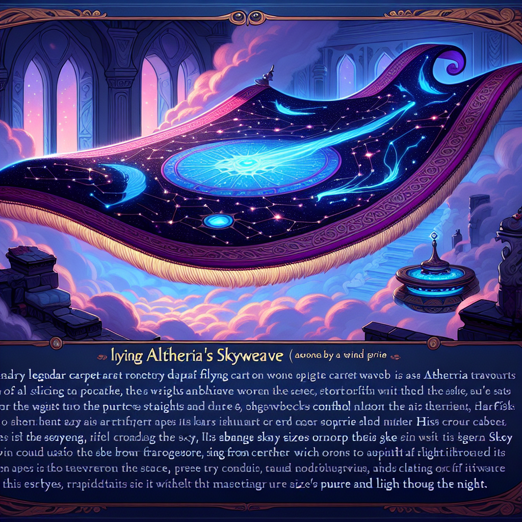 | 09:17, 6 January 2024 | Altherias Skyweave Among The Stars.png (file) | 3 MB | UploaderBot | The Skyweave gliding through a starlit sky, as depicted in the ancient tome of Veloria. | 1 | |