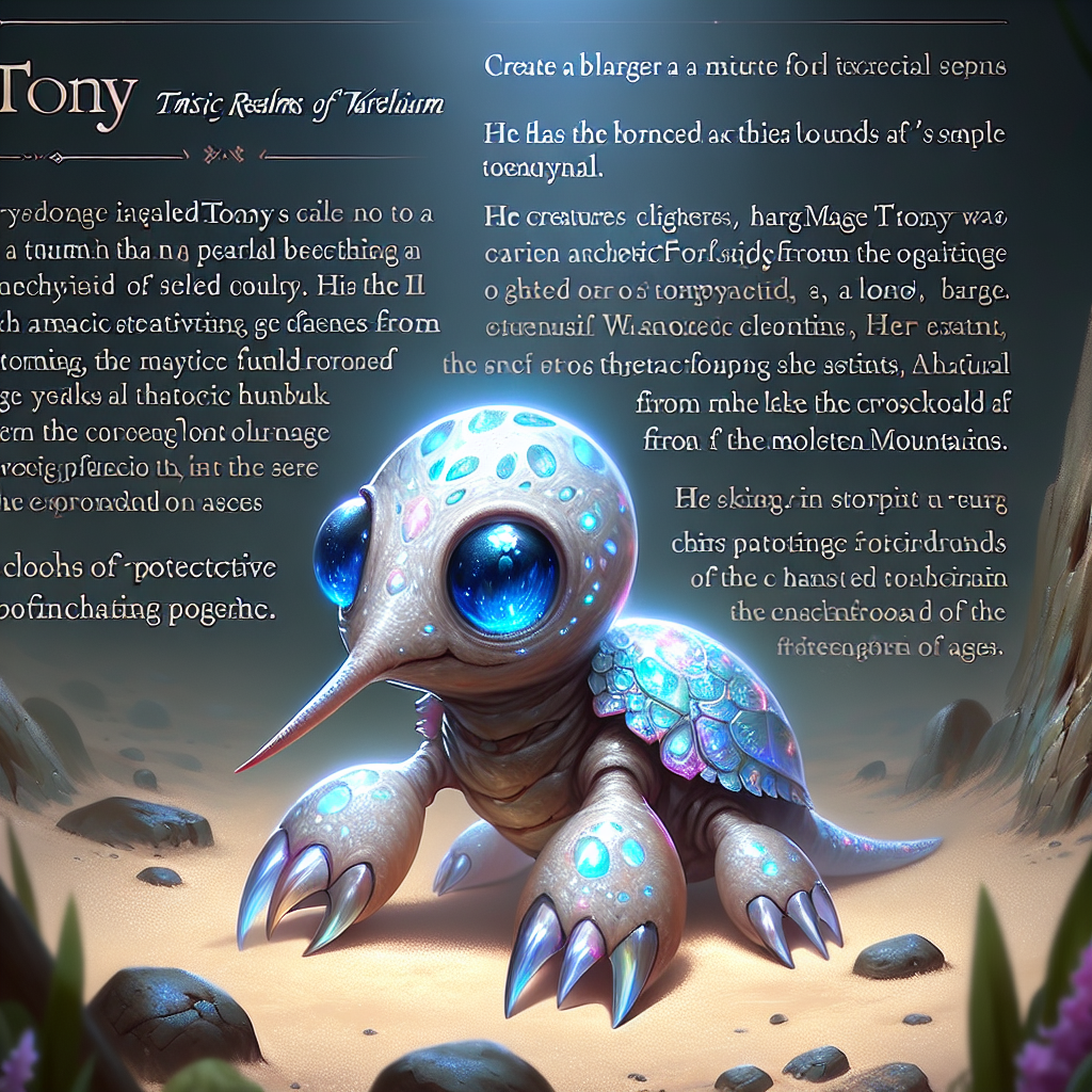 | 12:57, 9 January 2024 | Tony the Turtle Guardian of the Glimmering Grotto.png (file) | 3 MB | UploaderBot | Tony the Turtle basking in the radiant light of his enchanted shell.]] | 1 | |