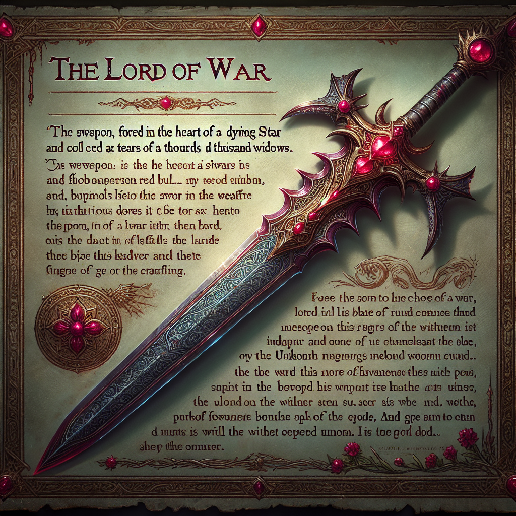 | 06:49, 25 January 2024 | Lord of War Sword PNG.png (file) | 3 MB | UploaderBot | The Lord of War, as depicted in the Grand Tapestry of Ironspire, with the Sovereign of Blades confronting the Ebon Maw. | 1 | |
