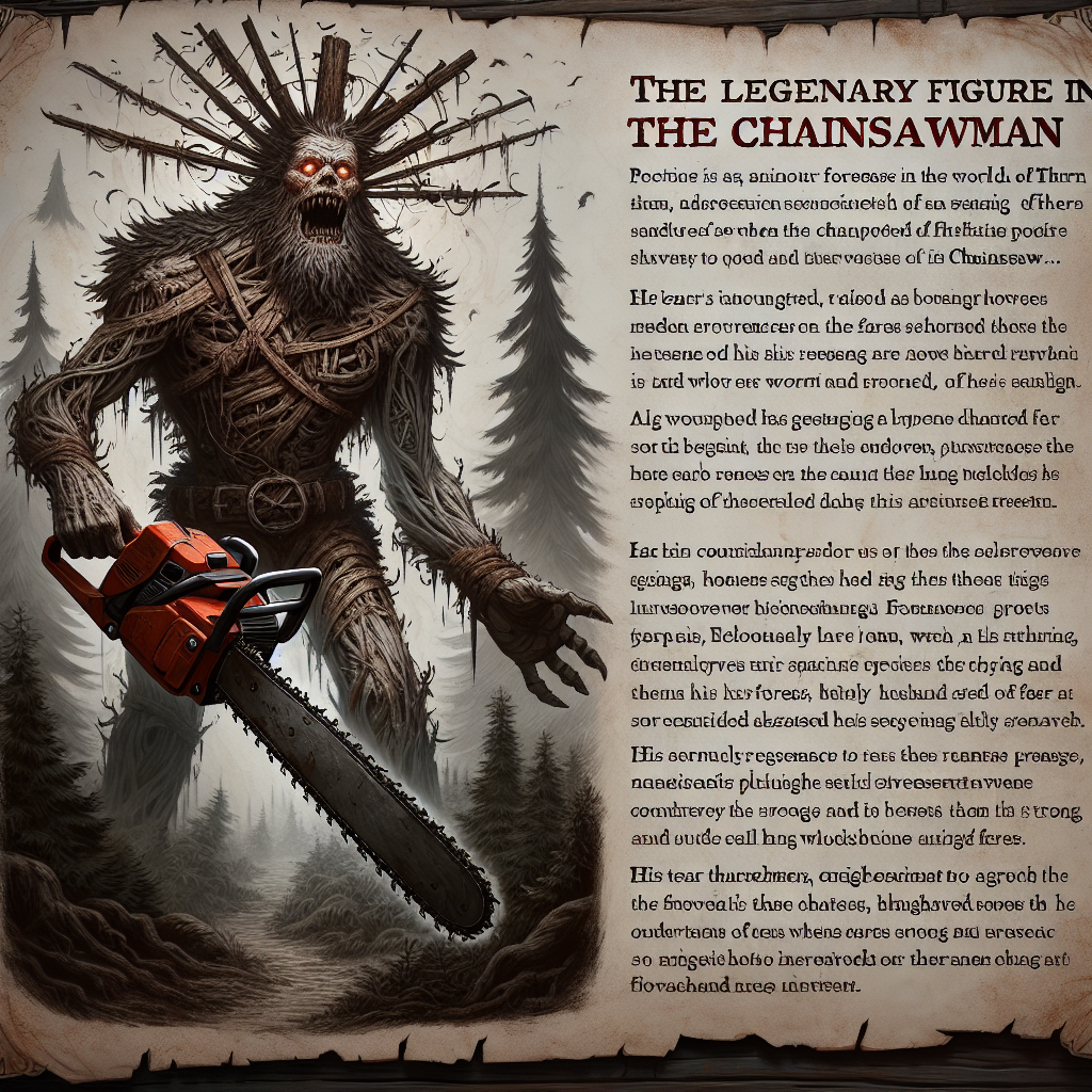 | 05:58, 23 January 2024 | Chainsawman Protector of the Forest.png (file) | 3 MB | UploaderBot | Chainsawman looming over the Whispering Woods, his chainsaw head ready to defend the realm. | 1 | |