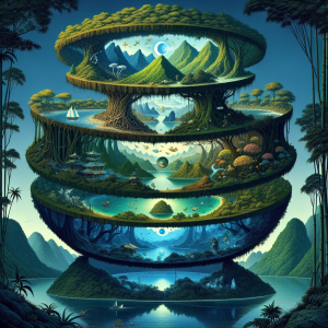 The origins of the Isle are as mysterious as its location. Legend has it that the gods, in their whimsy, decided to create a sanctuary that would serve as a testament to their powers and a challenge to mortals. Thus, the Isle of Halimaw was born out of the sea and sky, an intricate puzzle designed by divine hands. The first layer, an island of lush forests and towering mountains, cradles a serene lake within its heart. Within this lake lies a smaller island, a verdant jewel, which in turn embraces another lake. At the center of this final body of water floats the Isle of Halimaw, a place so surreal that it seems to be a fragment of a dream.