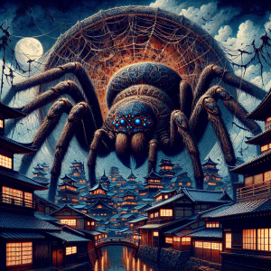 The gods, moved by her plea yet angered by her transgressions, answered her prayer in a cruel twist of fate. She was transformed into a spider, but not just any spider—a creature of immense size and power, doomed to live out her days in the shadow of the city she once called home. This transformation was both a punishment and a test; she was given the power to regain her human form if she could resist the urge to harm the inhabitants of Edo for one hundred years.