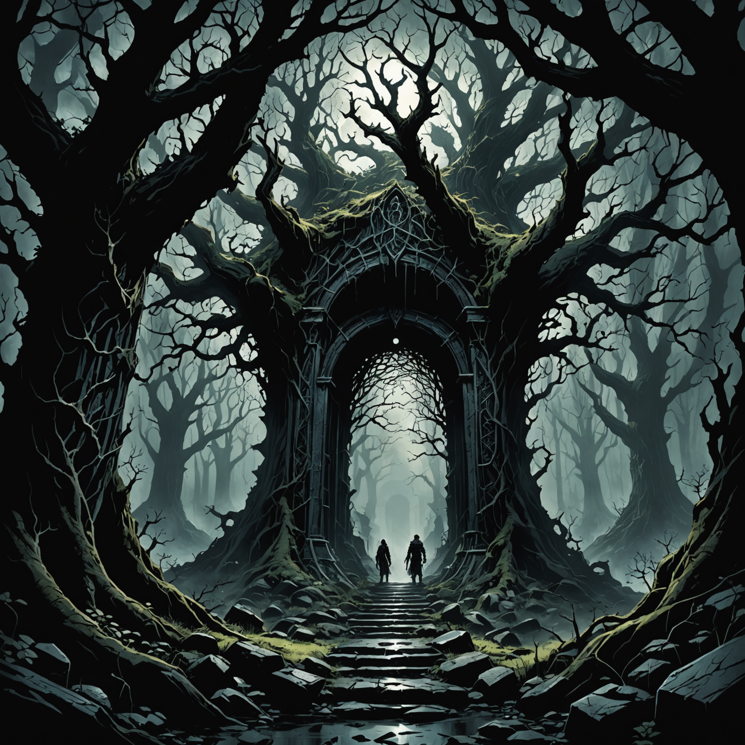 The entrance to Thyrax's hidden lair, cloaked in shadow and mystery.
