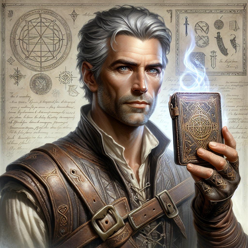 Portrait of Aelwyn the Wanderer, one of the most famous owners of the Coinkeeper's Wallet.