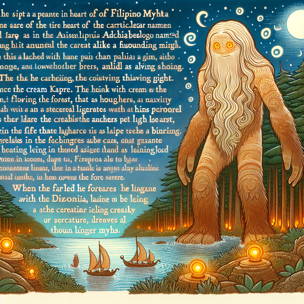 A rare depiction of the Cream Kapre's luminous presence in the Diwata Forest.]]