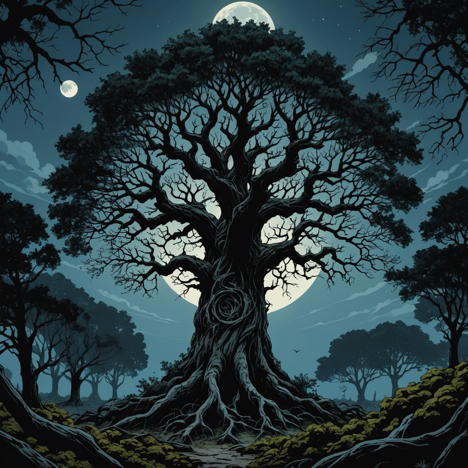 Close-up of the Doomshade Tree's shimmering leaves.