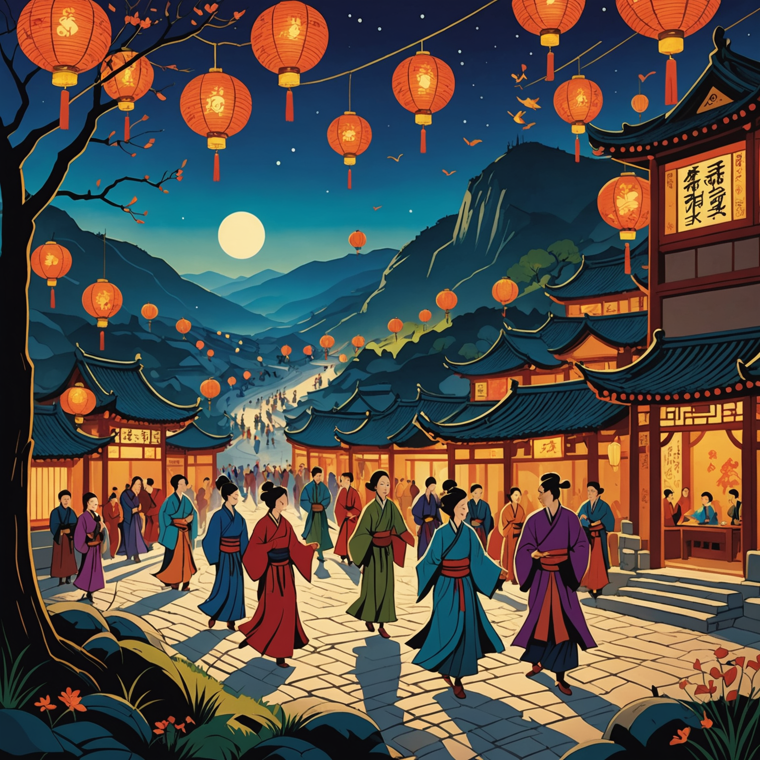 An ancient scroll depicting the first Festival of Dancing Shadows.