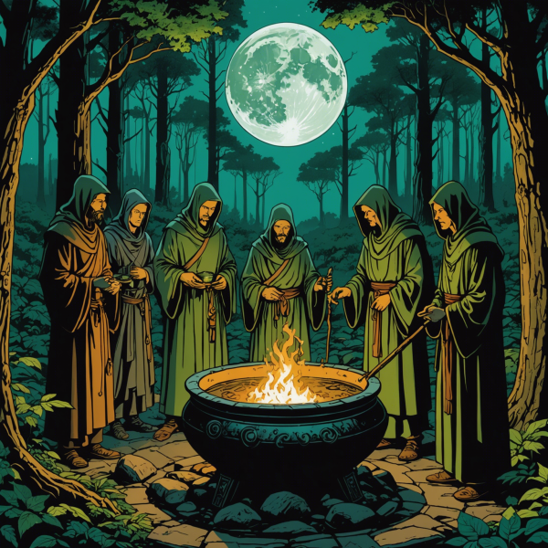 A secretive ceremony of the Guardians of Aeon within the Veridian forest.