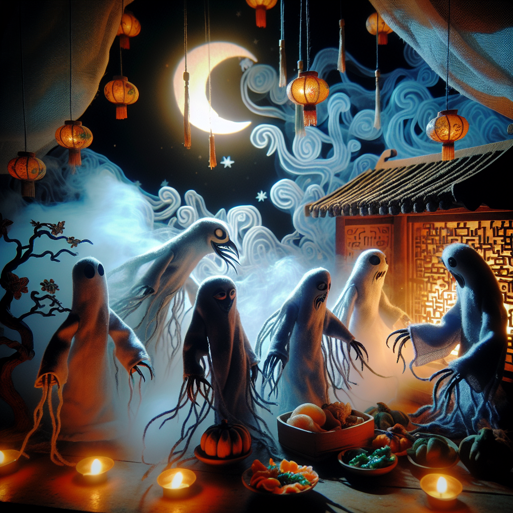 A festive puppet show depicting the tale of the Guǐ Chī Shì for an enthralled audience.