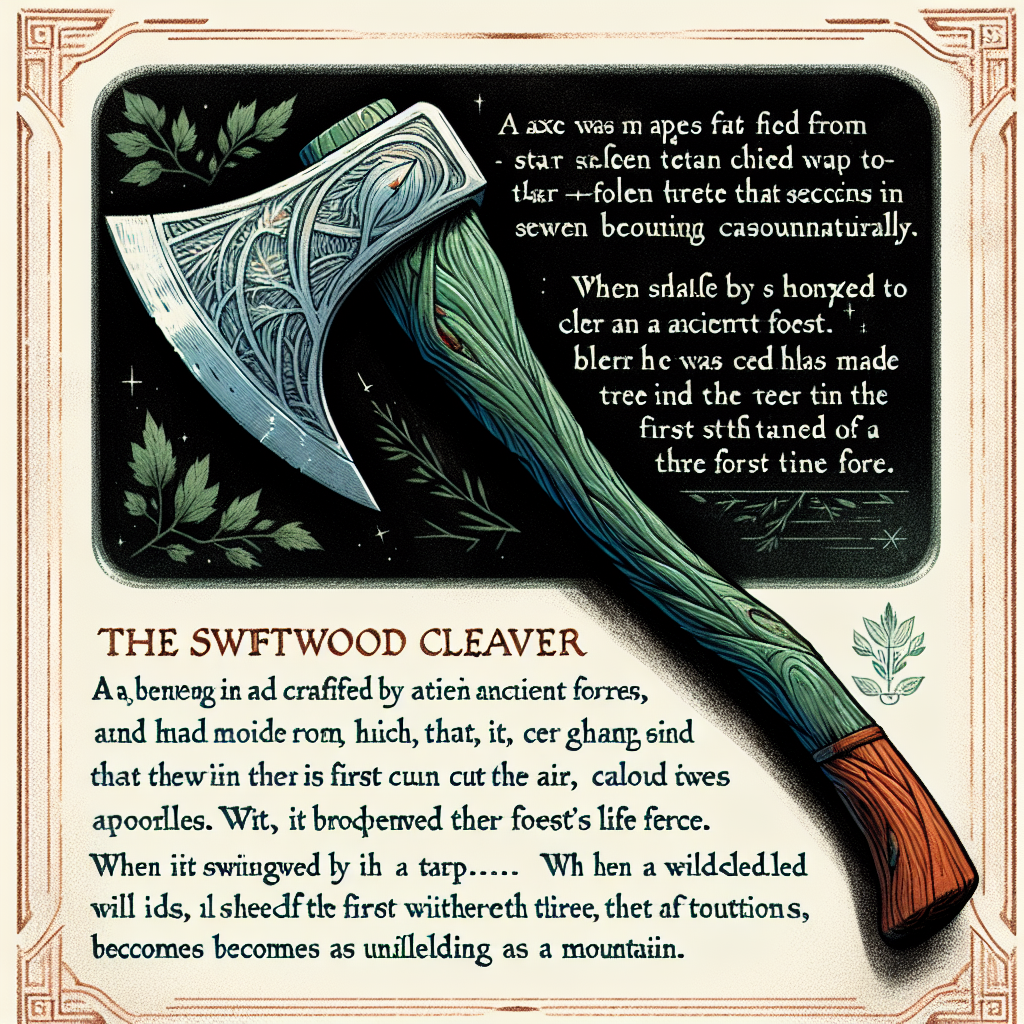 The mythical depiction of the Swiftwood Cleaver being forged by the forces of nature.