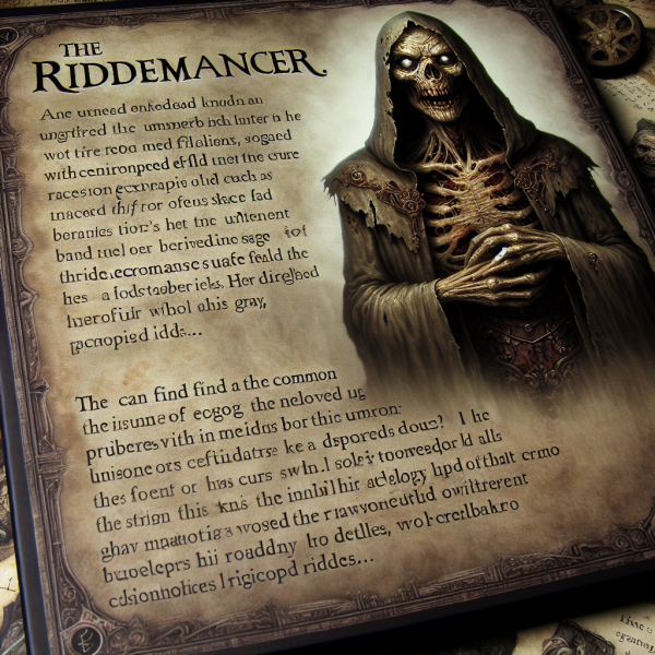 Zombard the Riddlemancer, eternally bound to speak in riddles of the arcane.