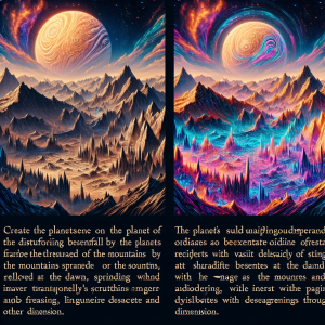 Despite its inherent dangers and the unpredictability of its climate and geography, the Planet of Chaos holds a mesmerizing beauty. Its landscapes offer vistas of impossible wonder, drawing souls brave or foolish enough to explore its mysteries. Here, the very essence of adventure is distilled, for no journey across its surface can ever be predicted, and no two tales of its exploration are ever the same.