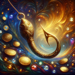 The Gold Fish Hook of Fortune gleams with an ethereal light, and it is believed that whoever holds this magnificent object in their possession is granted the uncanny ability to catch not fish, but the currents of prosperity itself. Tales speak of fishermen who, upon casting lines adorned with this hook into the mystical Waters of Fate, drew forth chests brimming with emeralds and diamonds instead of marine bounty. However, such a powerful charm is as elusive as the morning mist, and its whereabouts have been lost to the ages, known only to those pure of heart and intent.