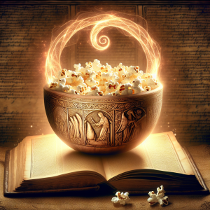 In a different vein, the "Midnight Feast of the Fae" recounts how the Cornucopia once found its way into the realm of the fae. The faeries, delighted by the novelty of the popcorn, held a grand feast that lasted from dusk till dawn. As dawn approached, they returned the bowl to the mortal world, enchanted so that it would also produce popcorn that sparkled with the colors of the aurora. This legend highlights the whimsical and unpredictable nature of magic, as well as the interconnectedness of all realms.