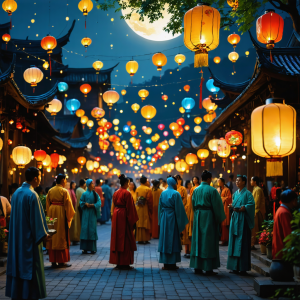As the festival approaches, the city buzzes with excitement and preparation. Families gather to create their lanterns, each one a unique work of art. Made from delicate paper and adorned with intricate patterns, the lanterns are painted in bright colors, symbolizing the various hopes and dreams of each family. It is believed that the more vibrant the lantern, the more it attracts benevolent spirits to grant those wishes.