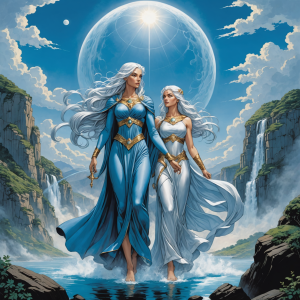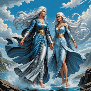 The Weather Twins are an enigmatic duo of celestial beings who possess the extraordinary ability to control the weather across the vast expanse of the mortal realm. Known by the names Zephyra and Nimbus, these twins are revered and feared in equal measure, their powers intertwined with the very essence of the elemental forces. Born of the union of the sky goddess Aetheria and the earth god Terranus, their lineage grants them unmatched dominion over the winds, rains, storms, and seasons.