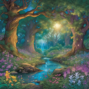 Nestled deep within the heart of the Enchanted Forest lies the Whispering Glade, a mystical haven where nature and magic intertwine in a harmonious dance. The glade, rumored to be as old as time itself, is a sanctuary of serenity and enchantment. Its boundaries are marked by towering ancient oaks, their gnarled branches forming a protective canopy that shields the glade from the outside world. The air is perpetually filled with the soft, melodic hum of nature’s symphony, a chorus of rustling leaves, chirping crickets, and the gentle babble of a crystal-clear brook that winds its way through the lush greenery.