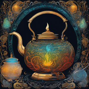In appearance, the Whispering Kettle is adorned with a spout shaped like a dragon's head, and its handle curls like the tail of a serpent. When not in use, it emits a faint hum, almost imperceptible to the ordinary ear, hinting at the dormant power within. Despite its fantastical features, the kettle functions like any other, requiring only water and heat to activate its hidden properties.