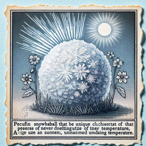 This extraordinary snowball does not melt, a feature that has baffled even the most astute mages and alchemists. It remains perfectly chilled, exuding a gentle aura of cold that can cool a room on the hottest of summer days or preserve food for months without the need for traditional ice. However, the orb never causes harm with its chill, as if it respects the boundary between comfort and frostbite.