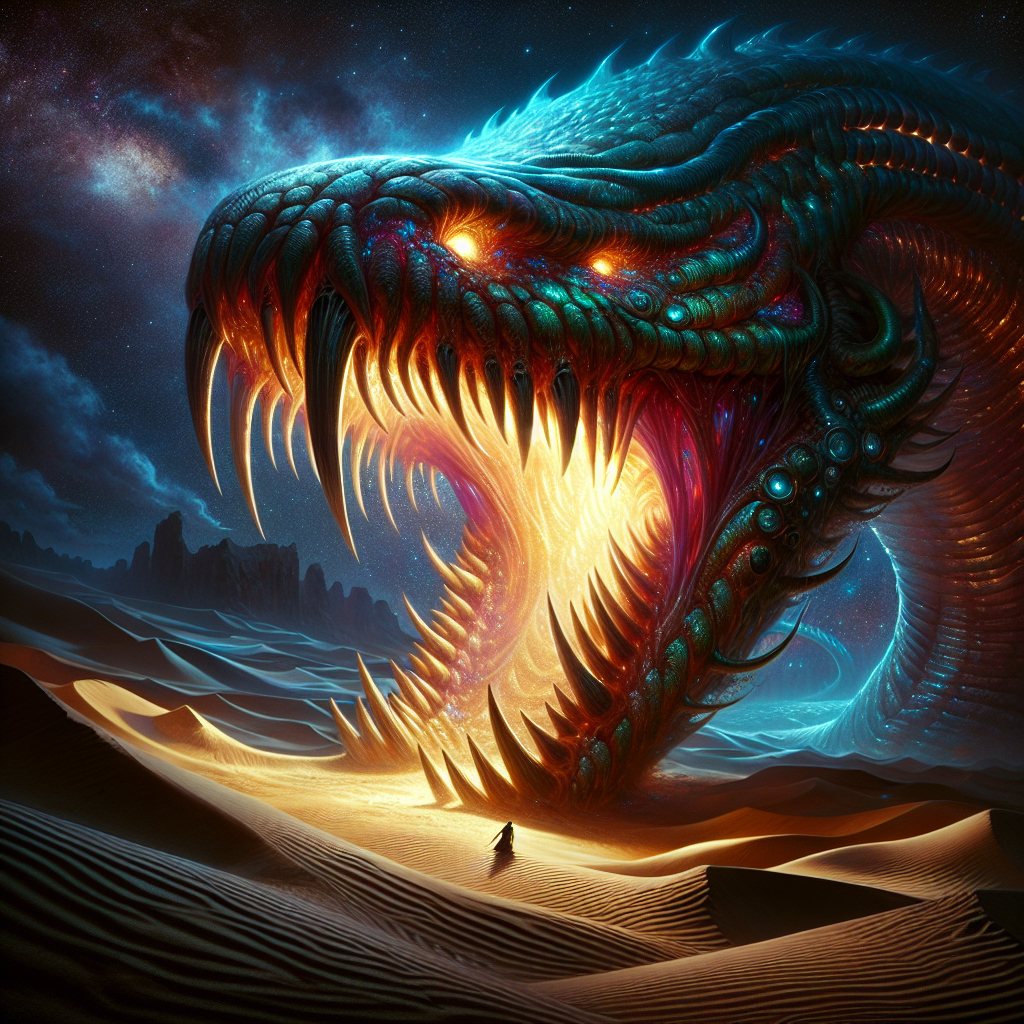 The glow of the Death Worm's scales illuminates the night as it hunts on the surface.