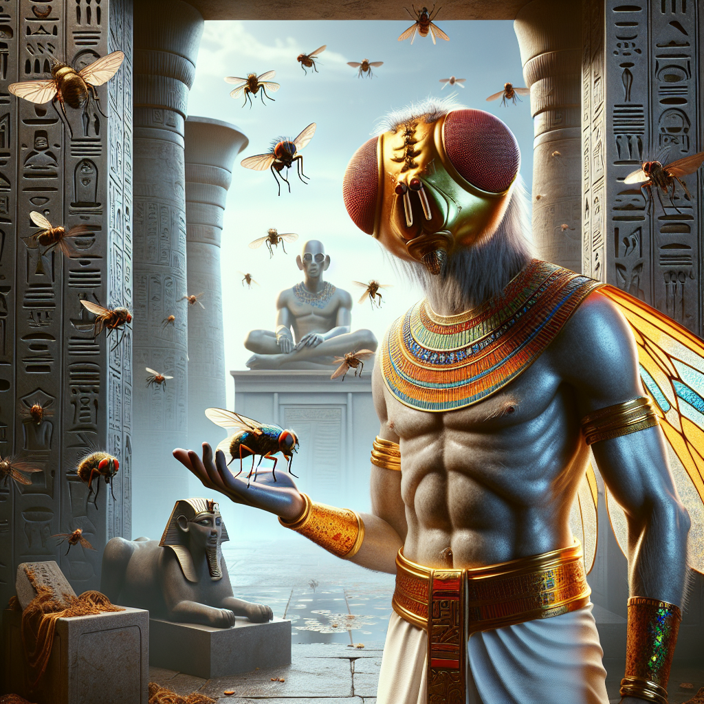 An artist's interpretation of the Temple of Amun-Rahekhty, shrouded in mystery and the silent buzz of sacred flies.
