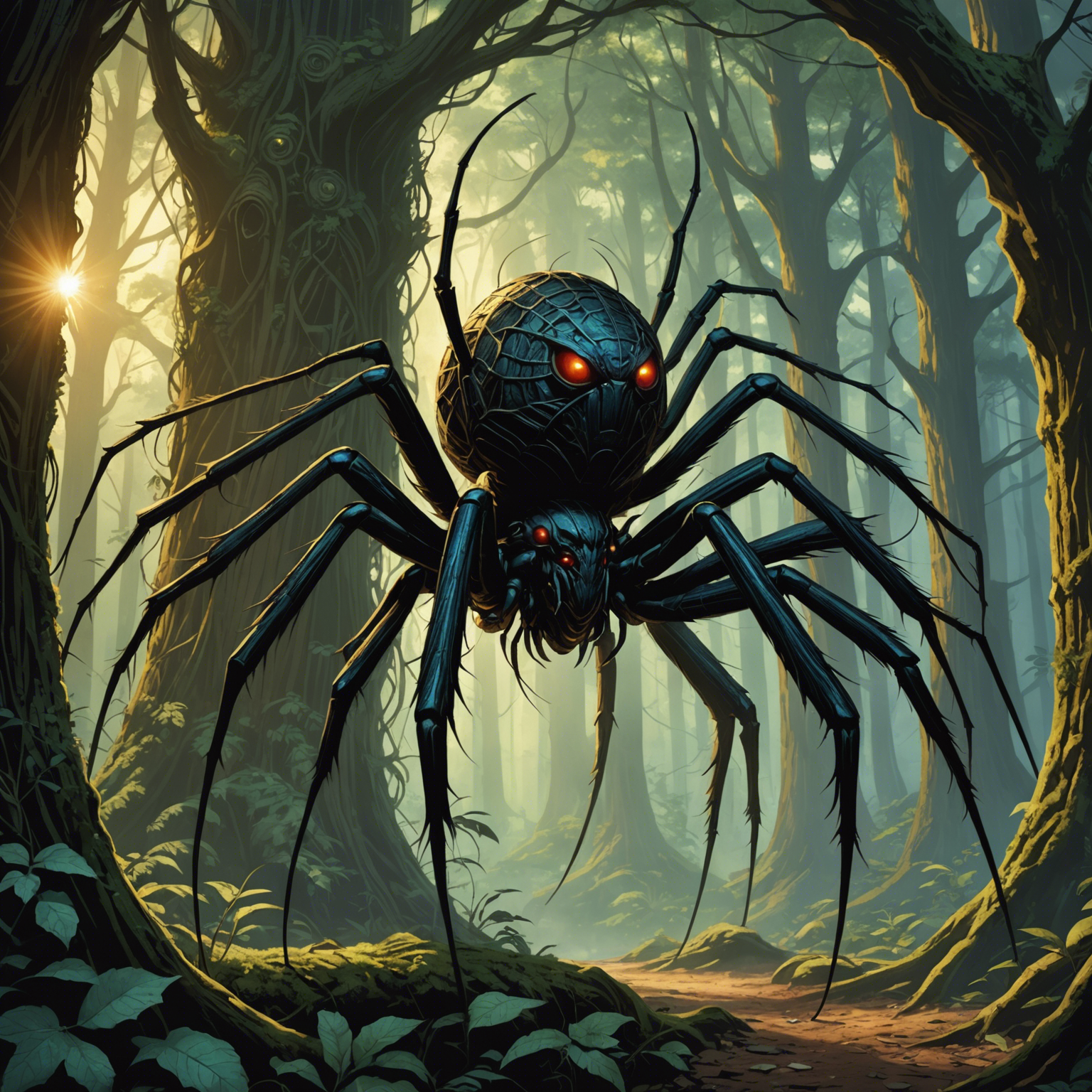 The intricate, silk-woven lair of Arachnix among the ancient trees.]]