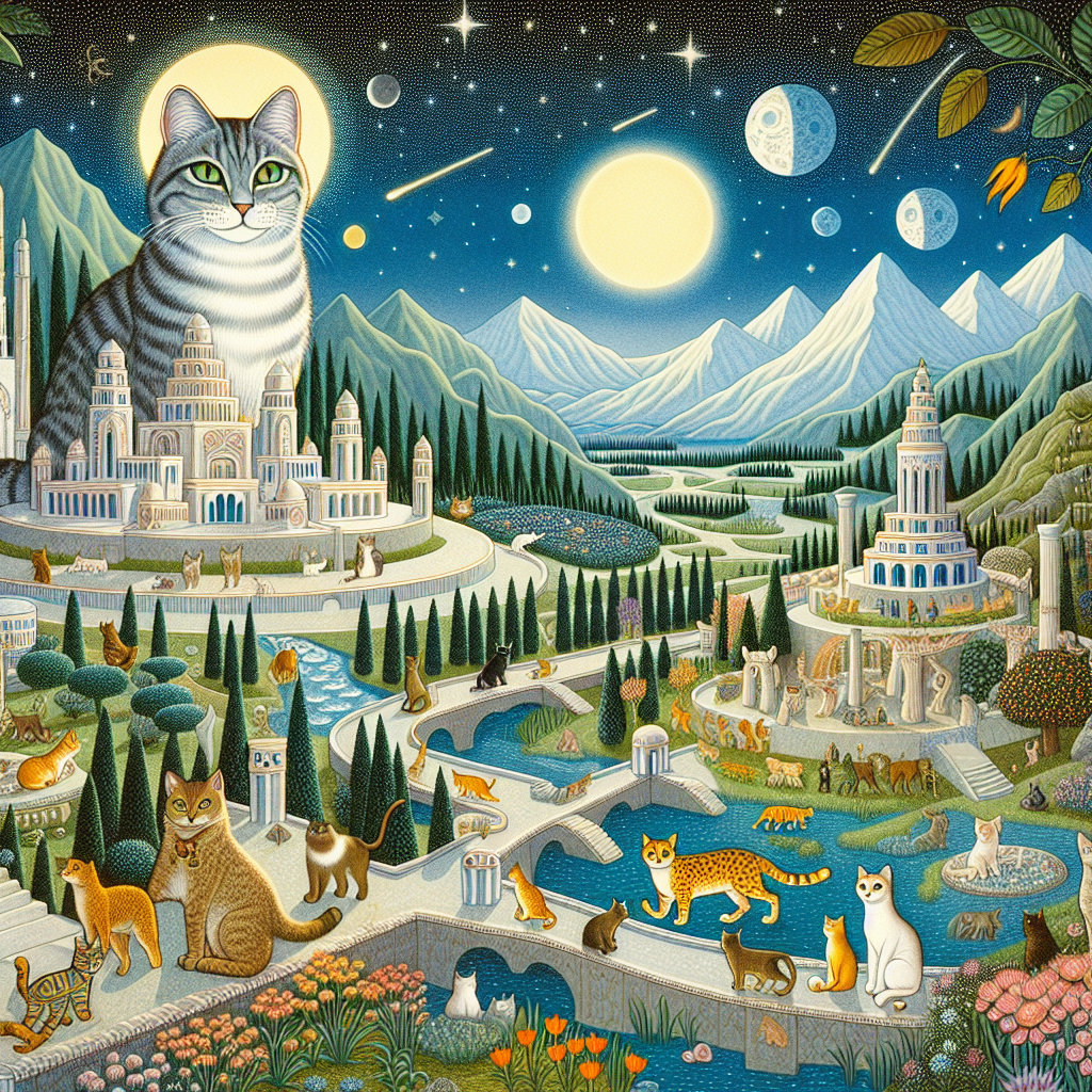 The legendary creation of Catopia, as depicted in ancient feline art.