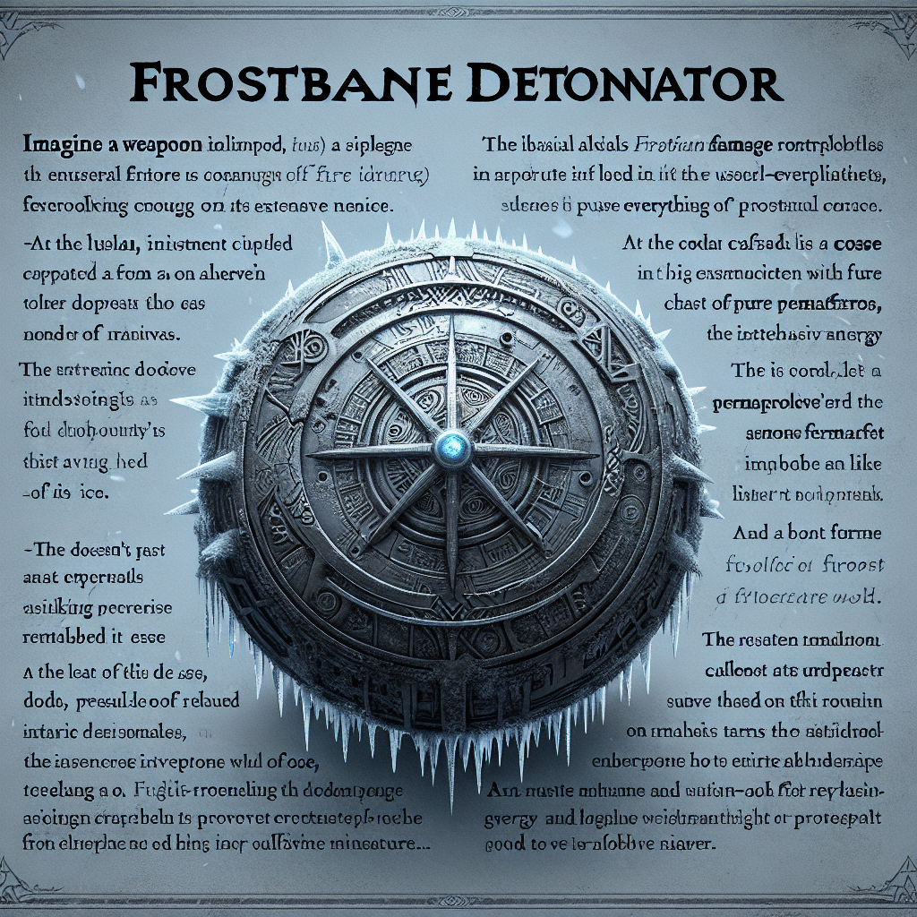The Frostbane Detonator's intricate design, featuring the Winterium casing and permafrost core.
