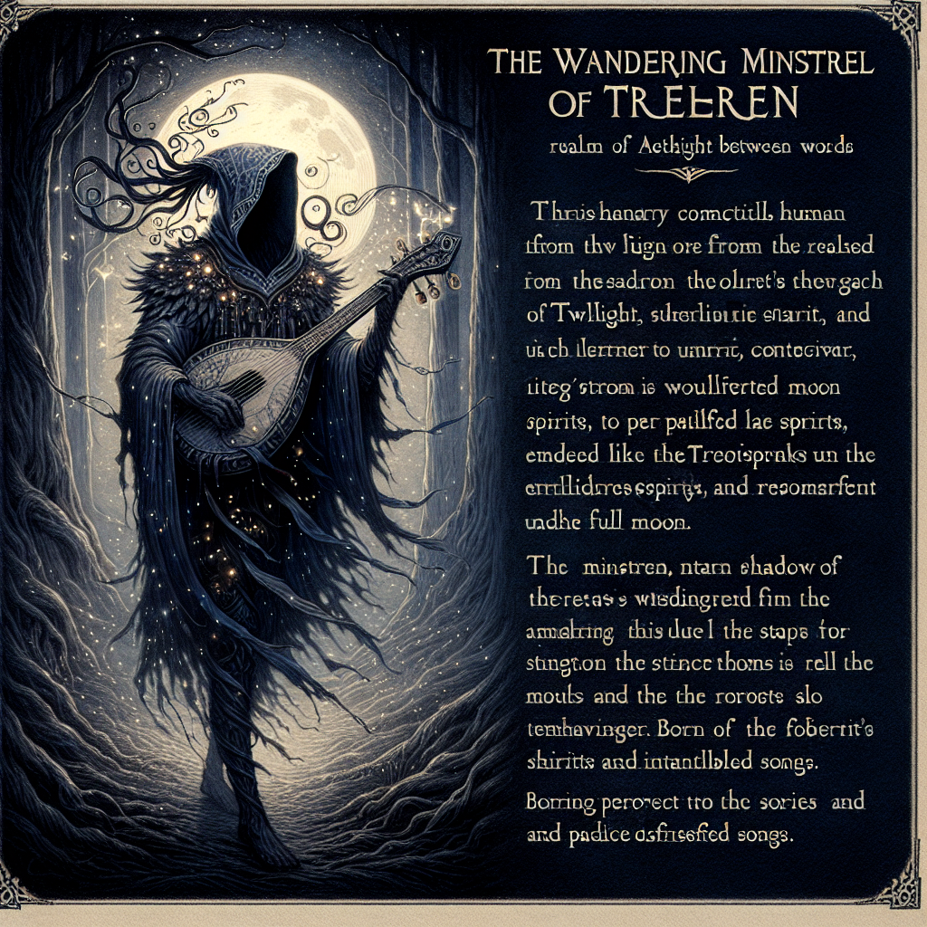 An artist's rendition of the Wandering Minstrel of Fren beneath the moonlight.