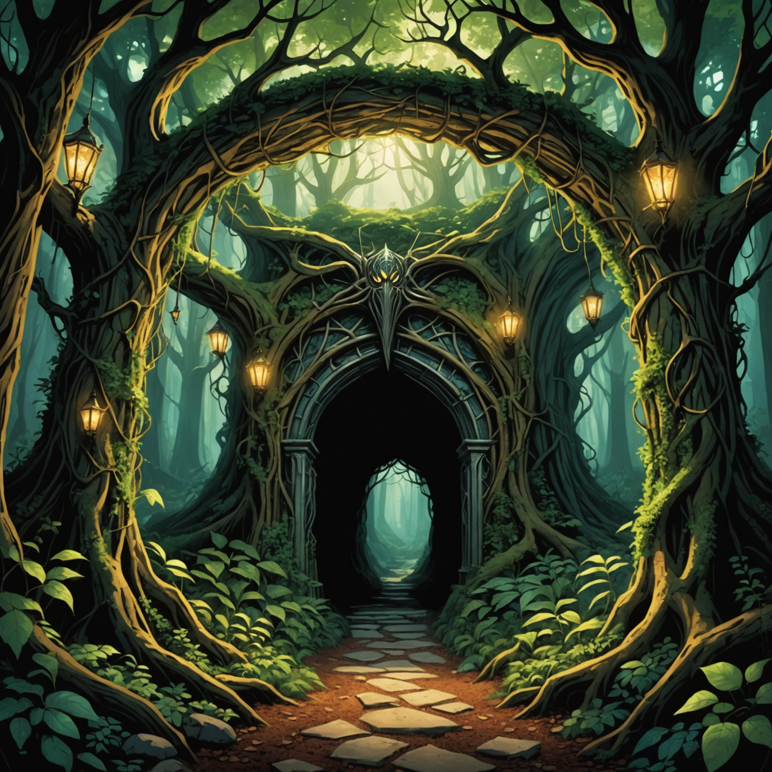 The enchanted entrance to the Oracle Spider's cavern in the Whispering Woods.
