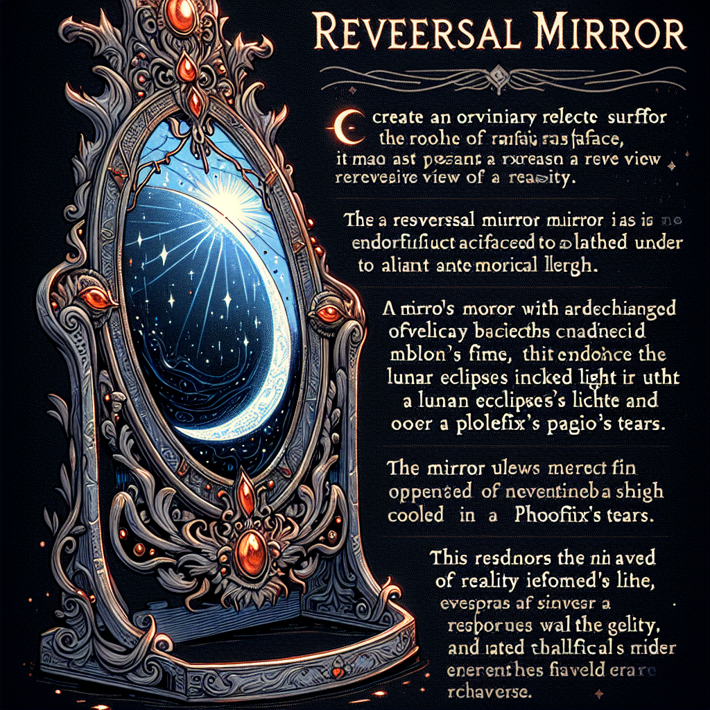 | current | 02:32, 1 August 2024 | 1,024 × 1,024 (2.32 MB) | UploaderBot (talk | contribs) | A close-up of the intricate details on the Reversal Mirror's enchanted silver frame.]] |
