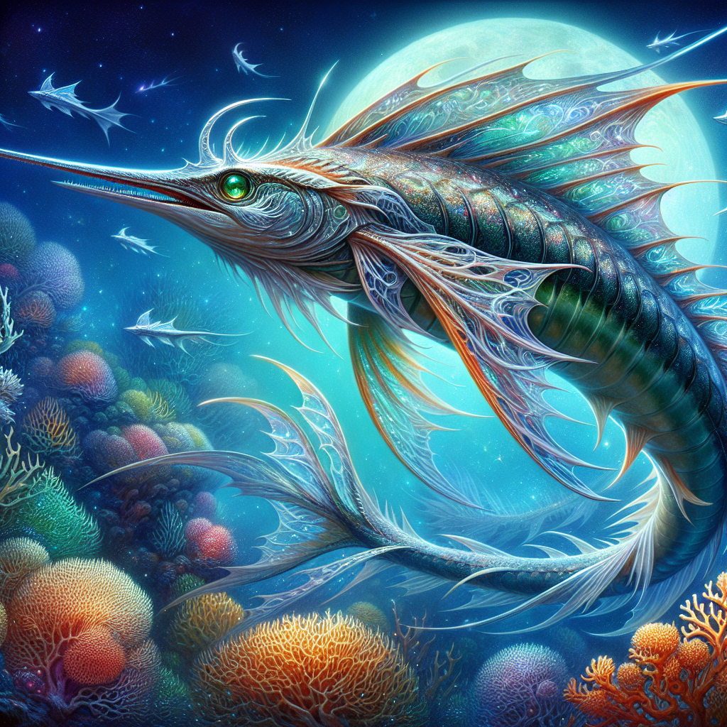 The vibrant coral reefs, home to the Silver-Tongued Marlin.