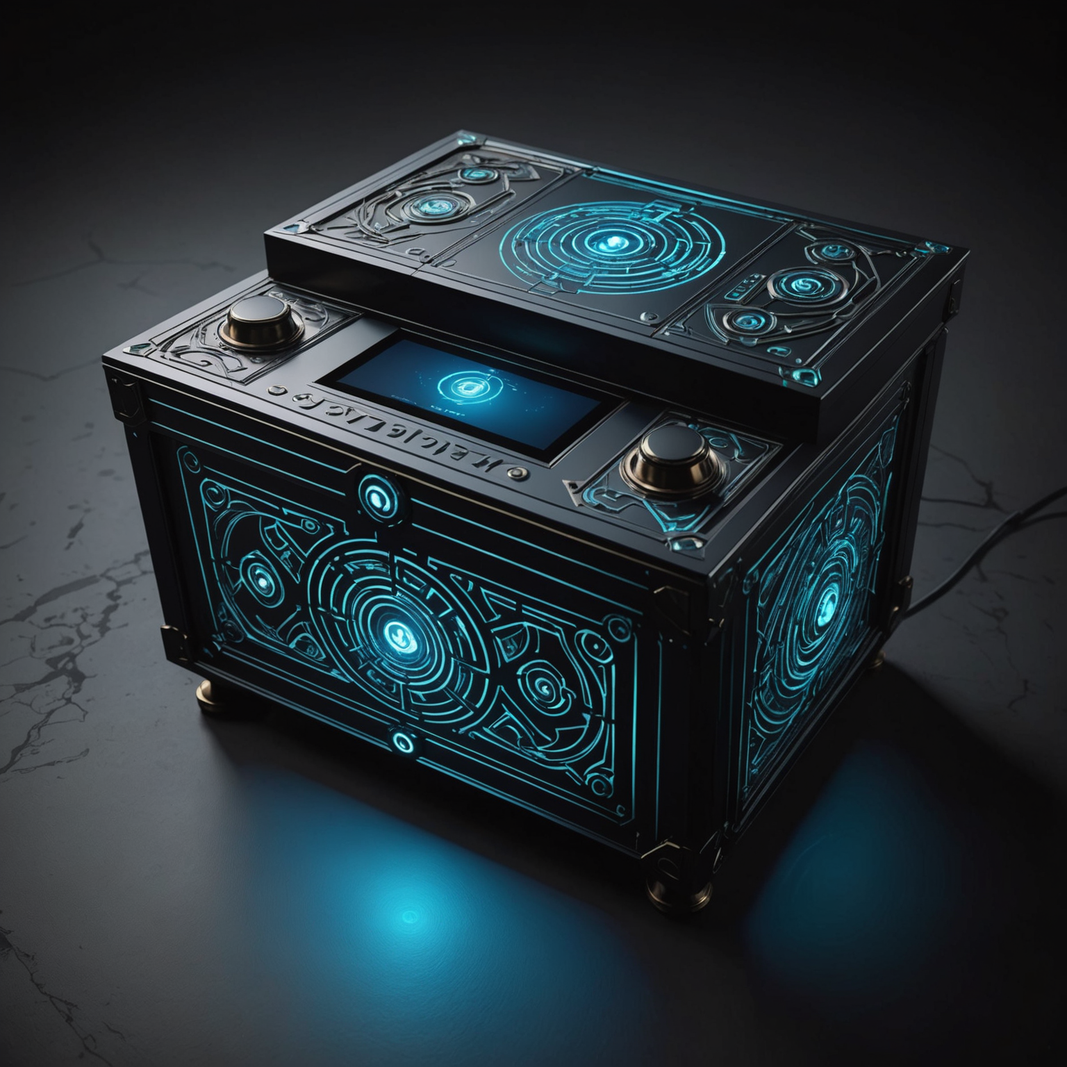 An artist's depiction of the Pixel Enchanter creating the Soultrap Console.